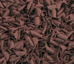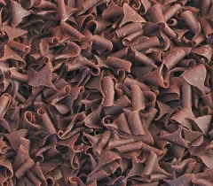 Dark chocolate curls are used for decorating cakes and patisserie, chocolate bars and on top of drinks and gelato.