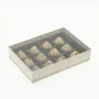 12 Choc Board Box & Clear Lid; Cocoa Shell Paper