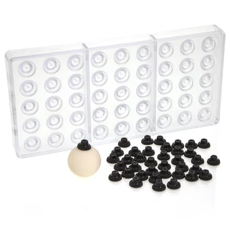 This sturdy polycarbonate mould makes a chocolate topper, or 'hook' which you can then use with a chocolate sphere to create the look of a Christmas bauble. Alternatively, they are the ideal shape to make small chocolate hats for snowmen!