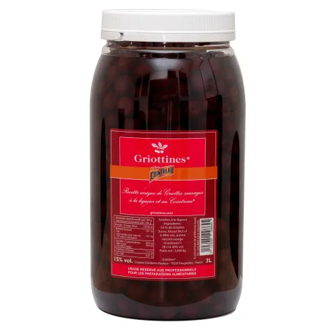 To conserve the unique flavour and physical characteristics of the fruit, the first maceration of the cherries in liqueur takes place within six hours of picking. After rigorous sorting, grading and de-stoning, the Morello cherries are then steeped in different liqueurs for successive macerations based on age-old know-how and secrets. The last maceration provides the final touch of Cointreau which is a wonderfully harmonious alternative to the original Griottines in Kirsch.