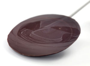 Air bubbles: these can appear as gaps or air pockets in the surface of your chocolate. This can occur if your chocolate is over-tempered and the chocolate thickens up, preventing the escape of air bubbles. Bubbles are often also present if your moulds have been insufficiently vibrated or shaken – shaking your moulds helps to remove air bubbles from the chocolate.