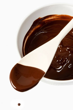 TIP: To check whether your chocolate is tempered put the tip of a palette knife into the chocolate, if correctly tempered the chocolate will harden evenly with a good shine within about 3 minutes at a room temperature of approximately 20°C.